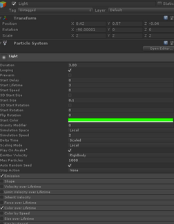 In this case, I created a green fire complete with embers, which is another particle effect in itself, and a green lighting to give the fire some life to the flame. I also made it so the fire stayed in one place and so that the flames got smaller as the particles move away from their original spawn point